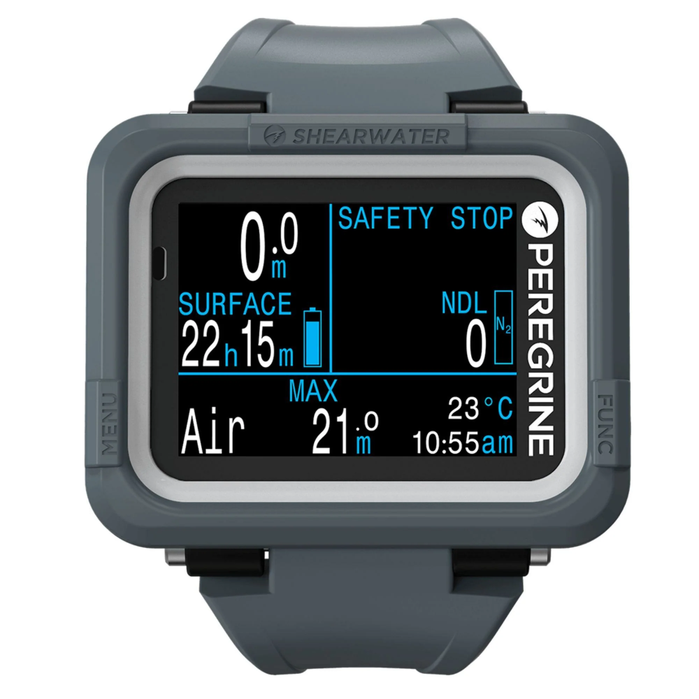 To top it off, the Peregrine logo flashes white which complements both the inner bezel and bright display that makes it easy to read. Get ready to go diving with Shearwater's Peregrine Dive Computer!